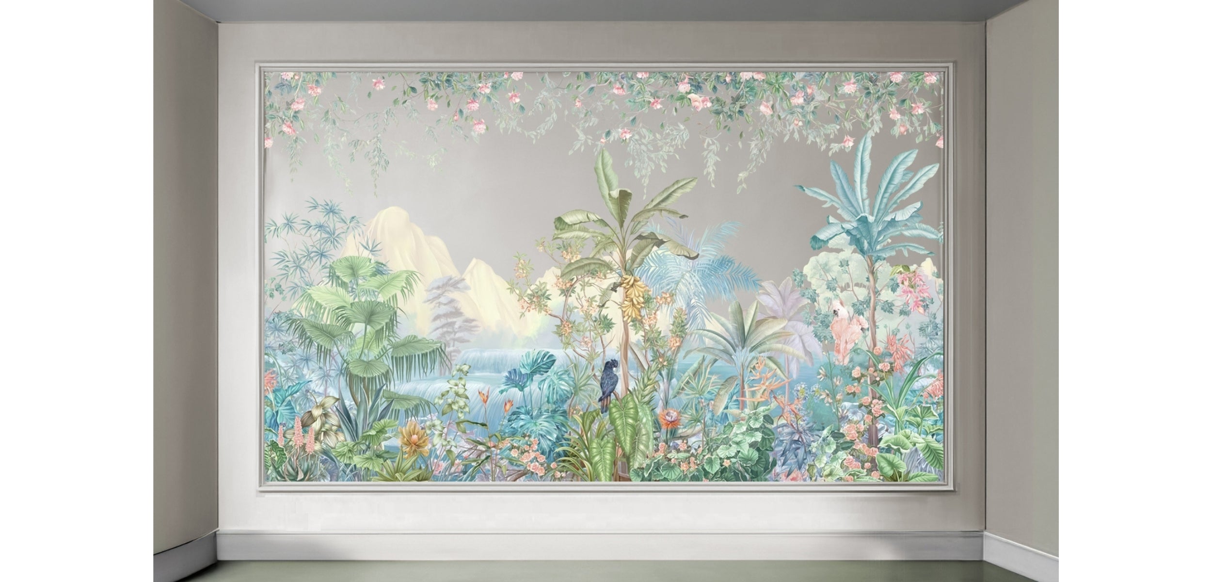 Met het ontwerp van Mystic Oasis creëer je moeiteloos een verfijnde en stijlvolle sfeer in elke ruimte. Dankzij de unieke muurprint en perfect afgewerkte sierlijsten transformeer je jouw muur tot een ware eyecatcher.