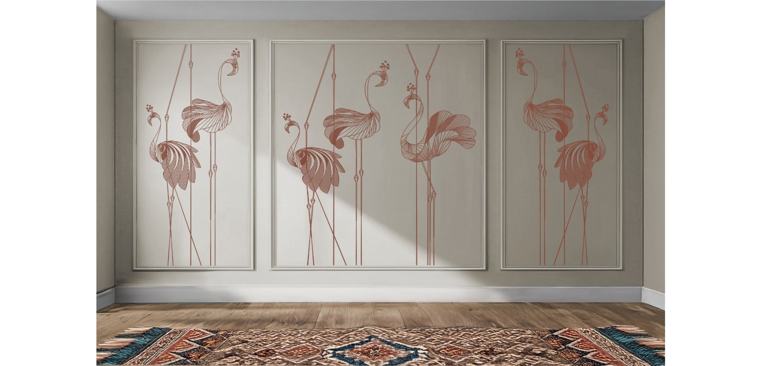 Geef je interieur een exclusieve uitstraling met het ontwerp van Rosé Lagoon – een luxe combinatie van schilderwerk, sierlijsten en een direct op de muur geprinte schildering. Deze complete muurtransformatie wordt volledig op maat gemaakt inclusief professionele montage. Van inmeten en voorbereiden tot een premium afwerking tot aan de kitnaad: wij regelen alles voor je.
